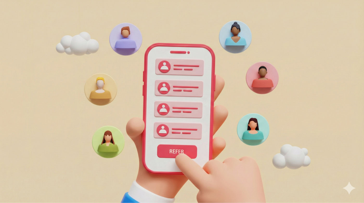● Referral activity: friend name, referral date, status (e.g., Pending / Completed)